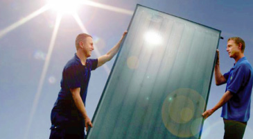 Solar panels harness the power in both direct and diffused sunlight and convert the energy to heat for the production of hot water for the home. The solar panels have been designed as a complement to existing heating systems which use a store of hot water in a cylinder. The existing cylinder is exchanged for a cylinder with two heat exchanger coils; one from the boiler in the property and a second from the solar panels.